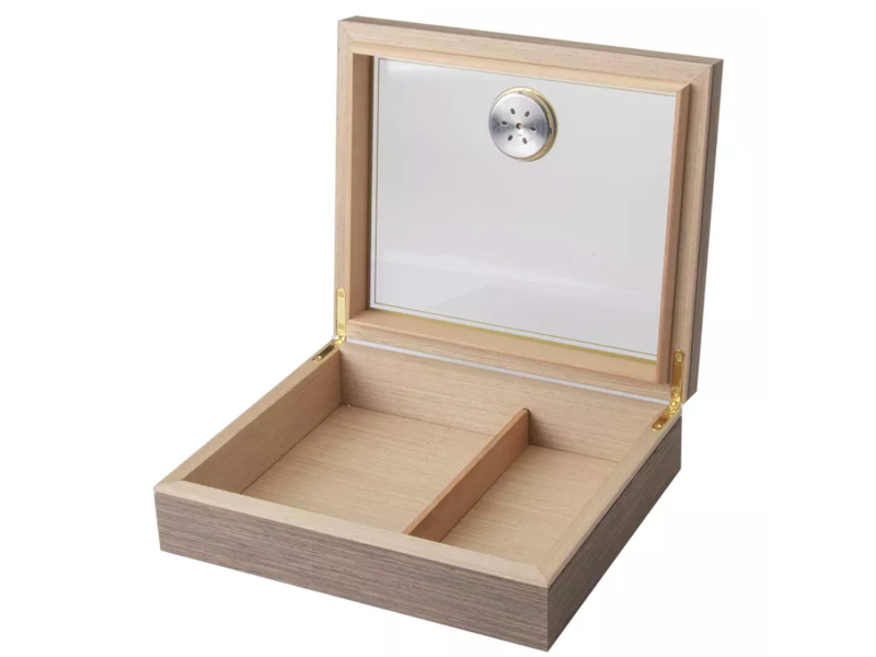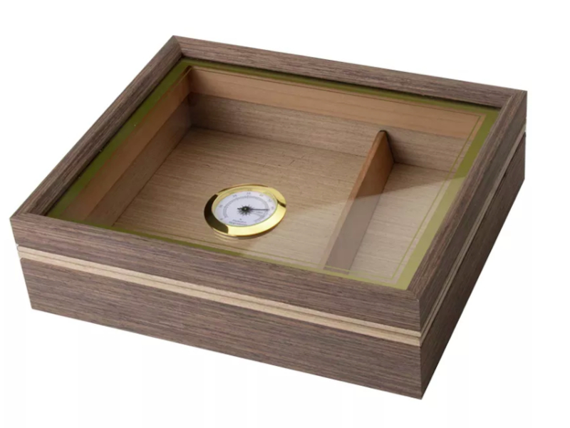 Achenty! Humidor 30 szál szivar részére, mintás üvegtetős szivartartó doboz, párásítóval, hygrometerrel – dió-dekor