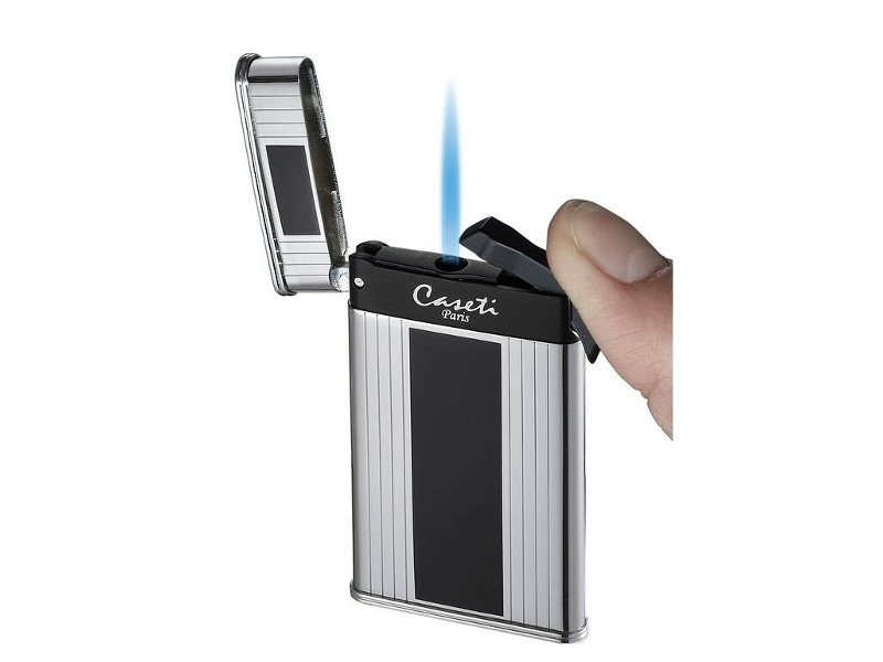 Elegáns, ultravékony kialakítású Caseti Montpellier öngyújtó tűzköves gyújtással. A kiváló minőségű Caseti Montpellier öngyújtó fényes króm felületű, finoman vésett csíkokkal, fekete betéttel díszítve. A Caseti Montpellier öngyújtó minden nap örömet szerez tulajdonosának, kényelmet és könnyű használatot biztosítva számára. Elég vékony ahhoz, hogy bármilyen öltönyzsebbe vagy szivarszekrénybe beleférjen – így mindig kéznél van!