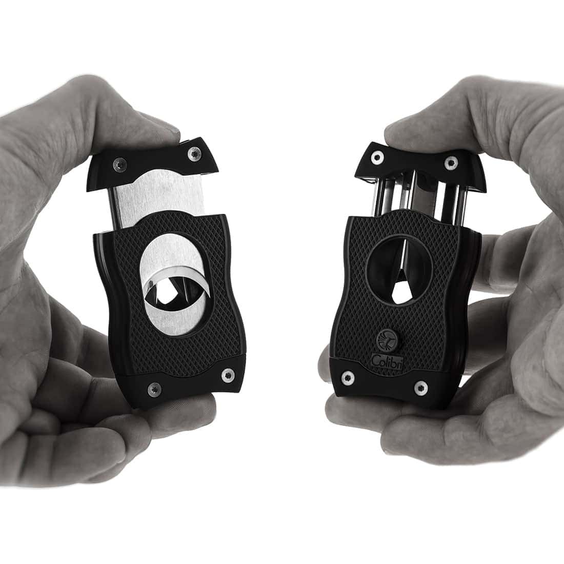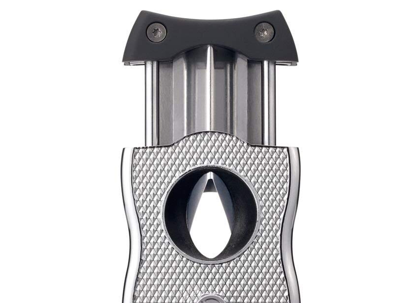 A Colibri SV-Cut rendszerű 2-in-1 szivarvágó, krómozott, fekete színű, mintás, homokóra formájú, rugóterhelésű rozsdamentes acél pengével. A szabványos vágást ötvözi egy max 7 mm-es mélységű „V-Cut” (macska-szem). Funkcionális és ergonómikus, ez a gyönyörű króm kettős rendszerű szivarvágó, és úgy tervezték, hogy biztonságosan illeszkedjen a kéz formájához, és a fogása is kényelmes.