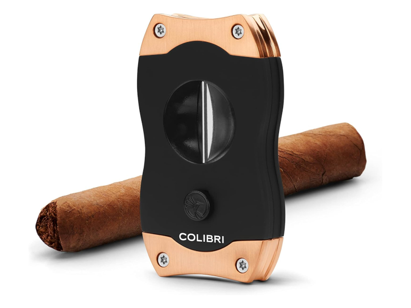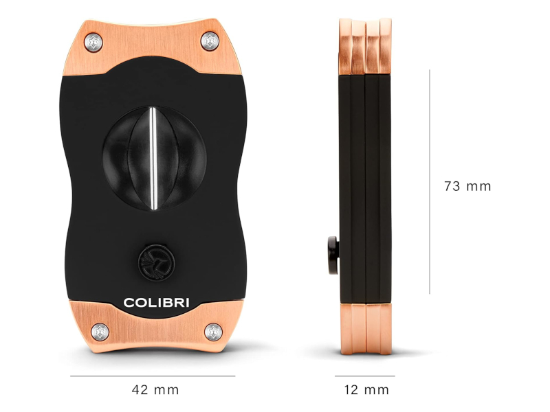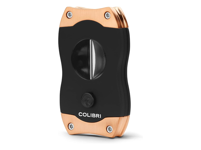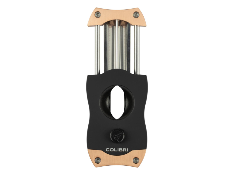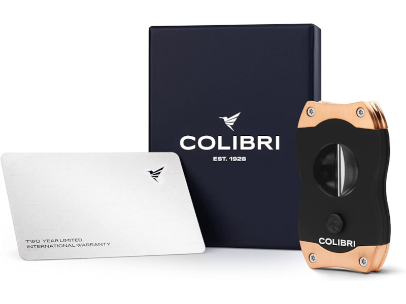 A Colibri V-Cut rendszerű szivarvágó arany és fekete színkombinációban, homokóra formájú, rugóterhelésű rozsdamentes acél pengével. A „V-Cut” vágás (más néven a macskaszem) 7 mm mélységet eredményez 60-as gyűrű méretig, és max. 23 mm-es átmérőjű szivarok vágására alkalmas. Funkcionális és ergonómikus, ez a gyönyörű Colibri szivarvágó, és úgy tervezték, hogy biztonságosan illeszkedjen a kéz formájához, és a fogása is kényelmes.