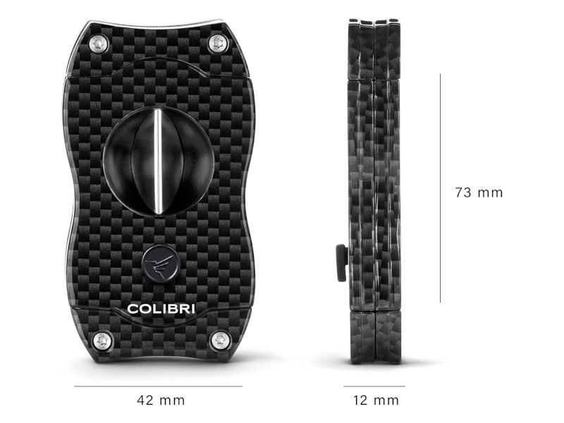 Exkluzív Colibri V-Cut carbon szivarvágó nagyon praktikus, stílusos és még magas igényeket is kielégít. A klasszikus V alakú vágás (V-Cut) elsősorban a vastagabb szivarokhoz használjuk. Ergonómikus alakjával a Colibri szivarvágó tökéletesen illeszkedik a kézbe és tökéletes bevágást vághatunk vele a szivarban. A Colibri V-szivarvágó kiváló minőségű, rugóval ellátott rozsdamentes pengével, amelyet kifejezetten hegyes szögben terveztek – így a penge 7 mm mély bevágást eredményez.