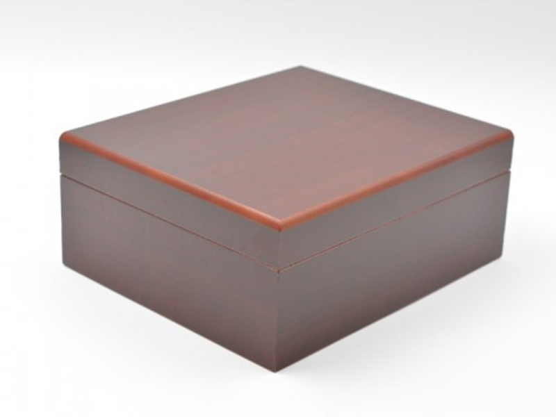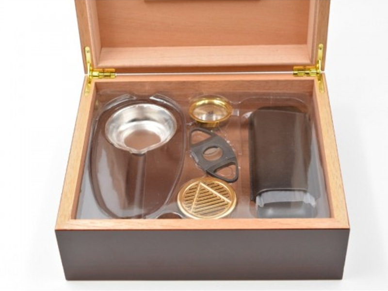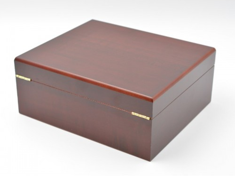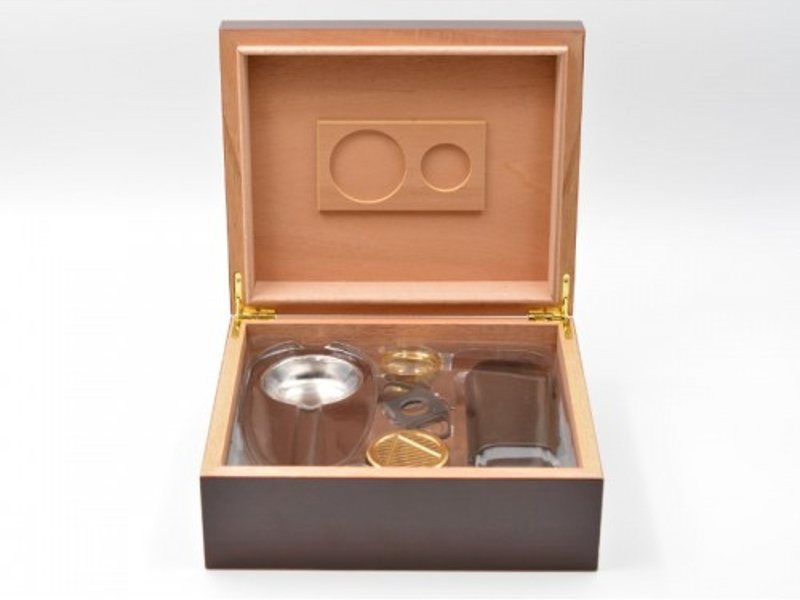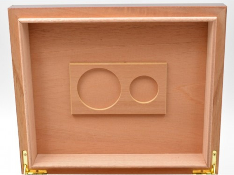 Cseresznye színű matt szivartartó doboz kb. 40 szál szivarnak, cédrusfa belsővel és süllyesztett zsanérokkal. A humidor tartalmaz egy beépíthető arany színű párásítót és egy arany keretes belső higrométert is. A szivar tárolóhoz természetesen jár egy választó léc is. A humidor alja fekete filccel van bevonva, ami védi a bútorokat az esetleges karcolódásoktól.