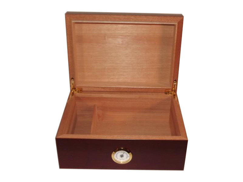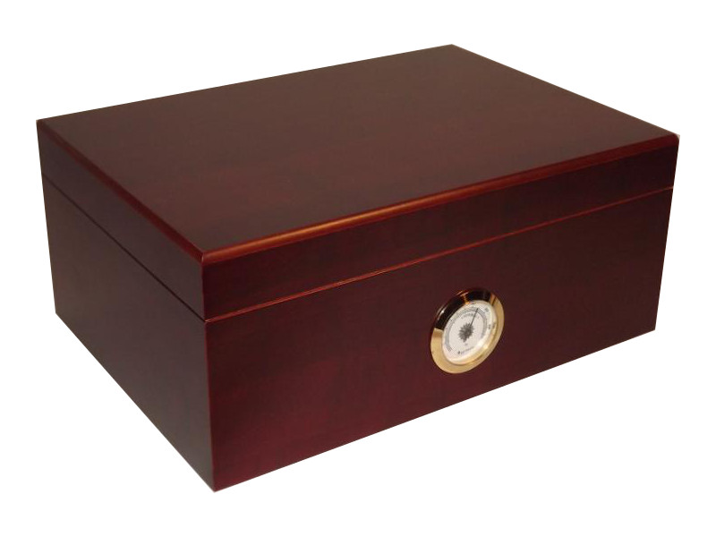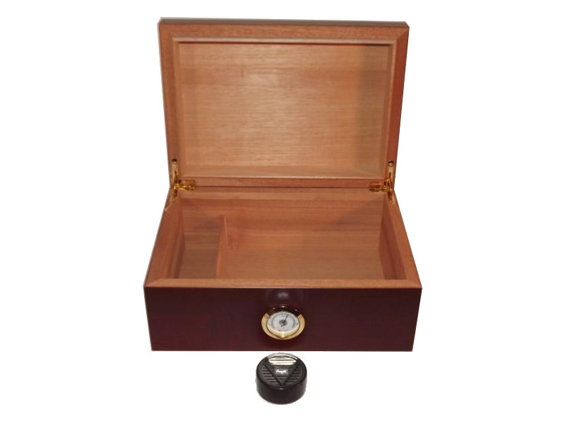 Olyan szivar tartó doboz, amely kb. 50 szivar tárolására alkalmas. Mahagóni színű szivar tartó Angelo humidor, cédrusfa belsővel, külső hygrométerrel.