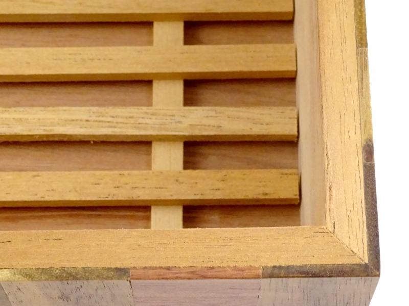 Anyaga: spanyol cédrus, kivehető rácsos cédrusfa tálcával.