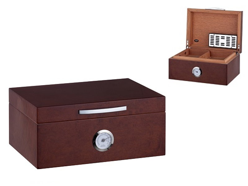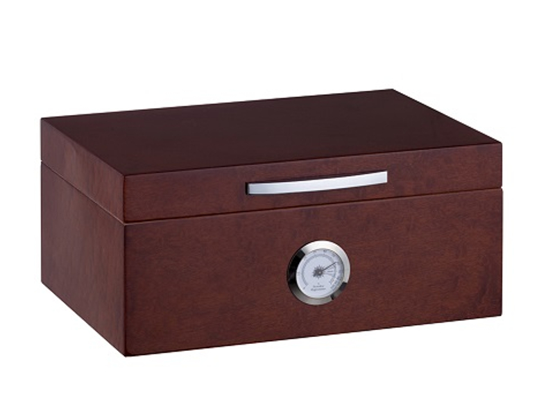 Barna színű, matt cédrusfa szivardoboz, amely kb. 50-60 szál szivar tárolására alkalmas.