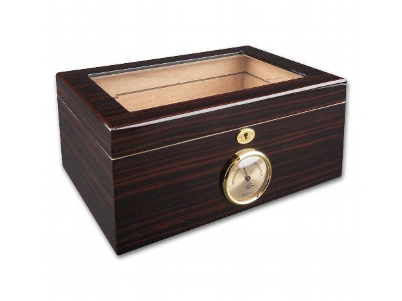 Sötétbarna színű, ébenfa borítású szivar tartó doboz üveg tetővel. A szivar tartó humidor kb. 60 szál szivar tárolására alkalmas, spanyol cédrusfa belsővel és elválasztó léccel rendelkezik. A két szintes cédrusfa humidor teteje süllyesztett arany színű zsanérokkal van rögzítve. A humidor tartozéka egy rácsos cédrus választó elem is, aminek a különlegessége az, hogy a levegő jobban tud a szivarok között mozogni, így páratartalom is egyenletesebb lesz a humidor elsejében.