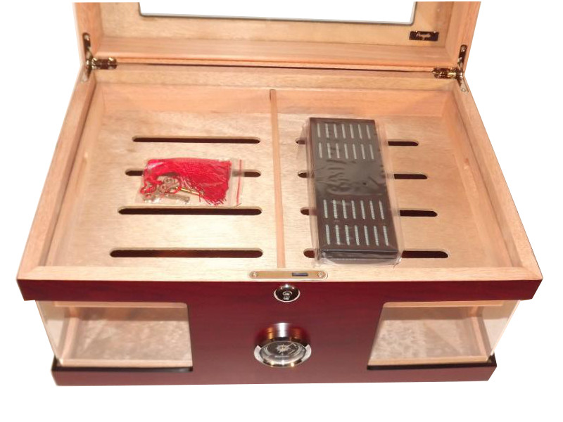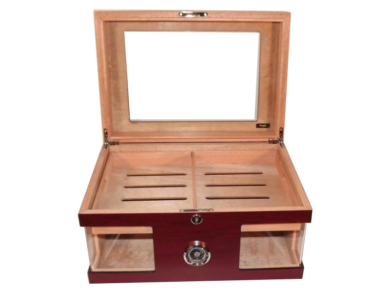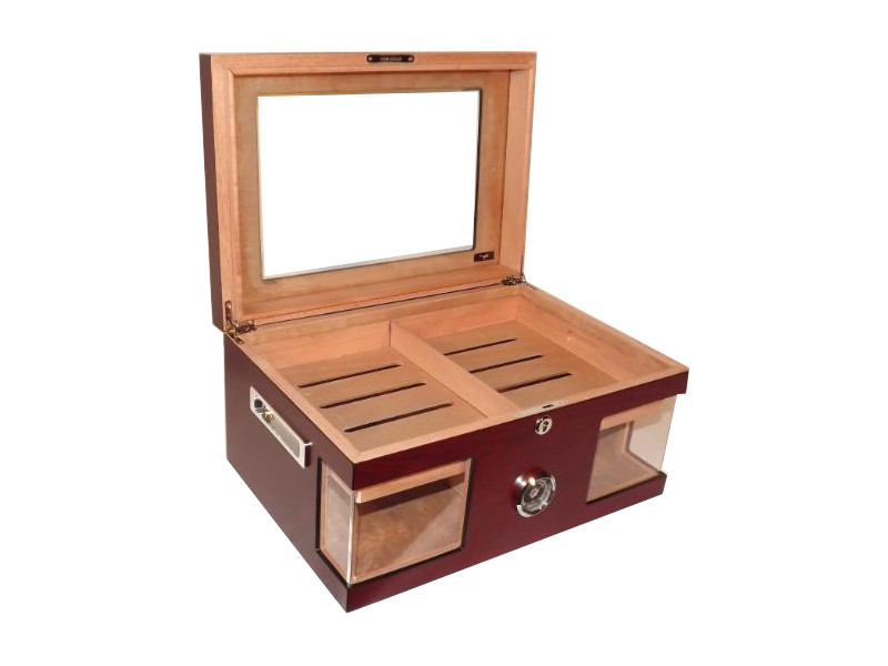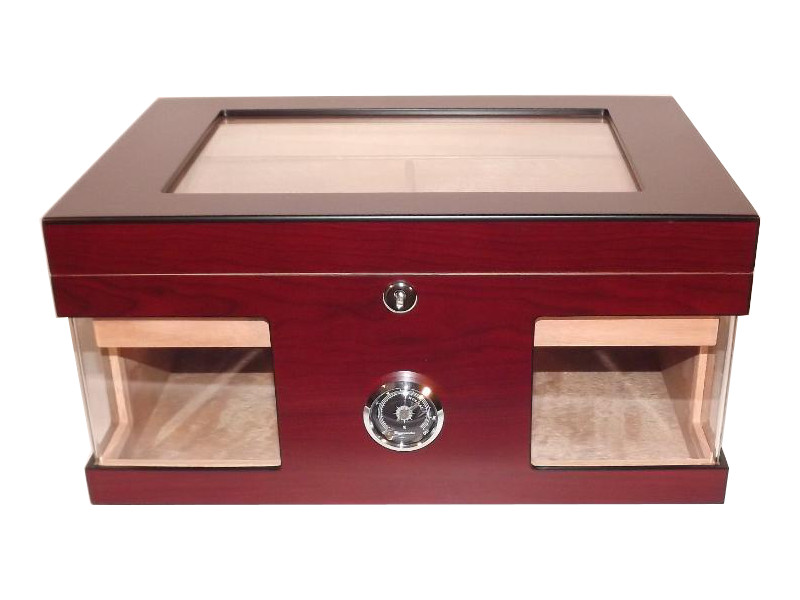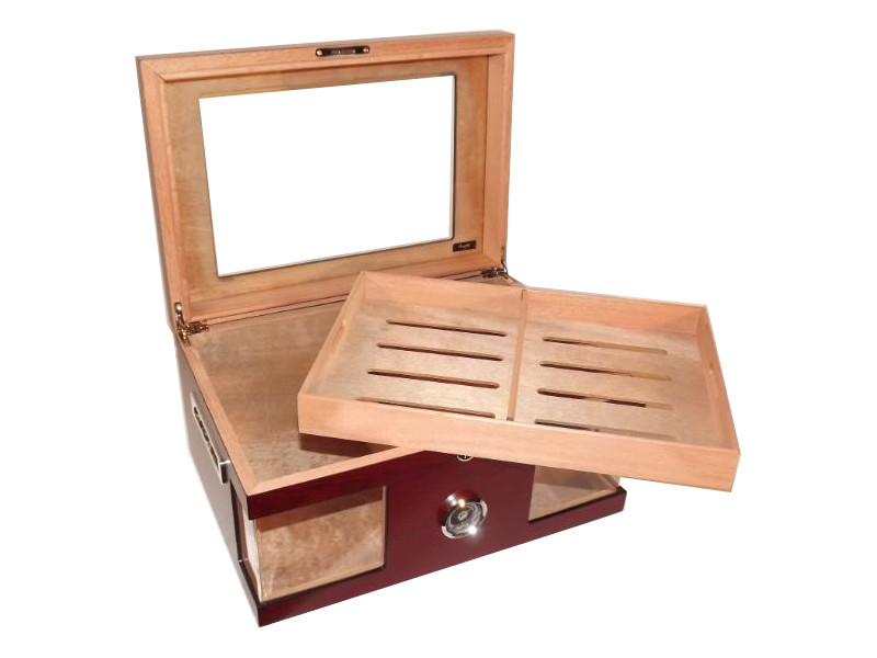 Humidor 80 szál szivar részére, cédrusfa szivar doboz, üvegtető, hygrométerrel és párásítóval – bordó, Angelo