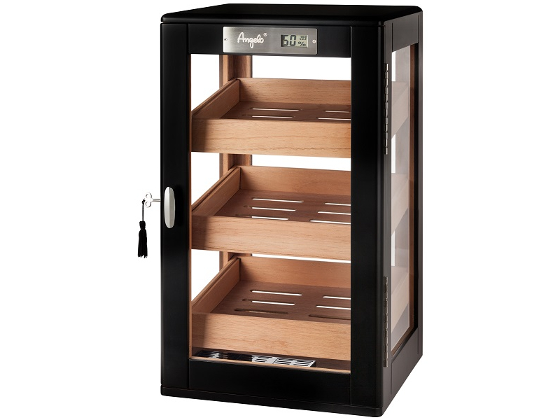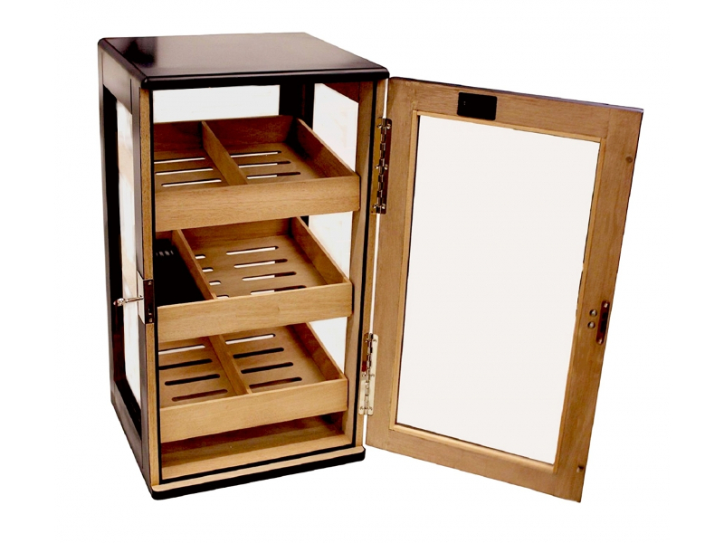 A humidor szekrénynek mind a négy fala körbe üveg és 3 db döntött, cédrusfából készült fiókot tartalmaz, így a benne elhelyezett szivarok jól láthatóak bármelyik irányból. A fiókok alján szellőztető rések vannak, hogy könnyebben cirkuláljon a levegő a fiókok között és egyenletes legyen a páratartalom a humidor belsejében mindenütt.