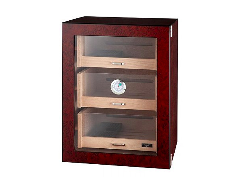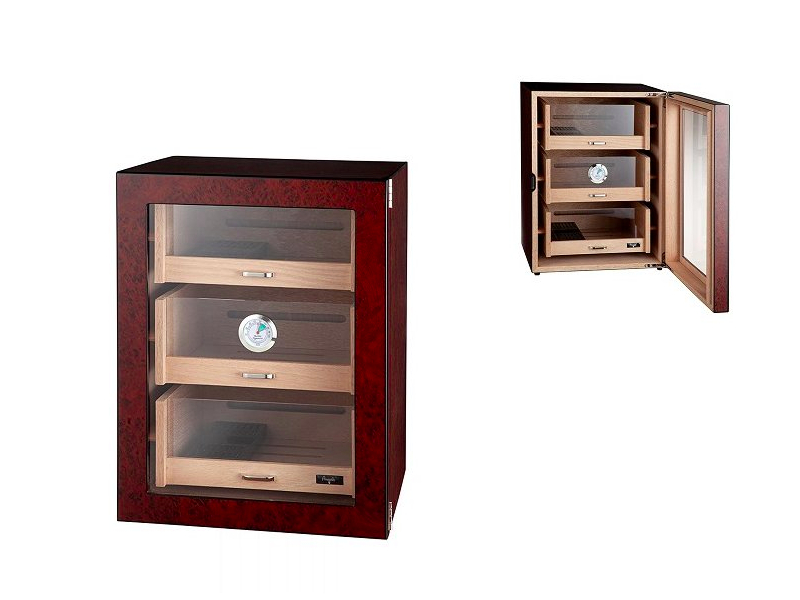 A humidor szekrénynek az ajtaja üveg és 3 db döntött, cédrusfából készült fiókot tartalmaz, így a benne elhelyezett szivarok jól láthatóak. A fiókok alján szellőztető rések vannak, hogy könnyebben cirkuláljon a levegő a fiókok között és egyenletes legyen a páratartalom a humidor belsejében mindenütt.