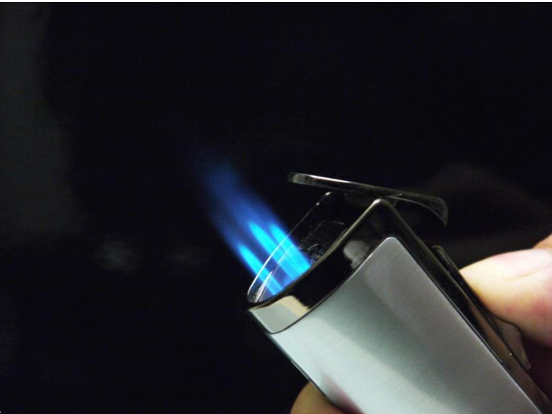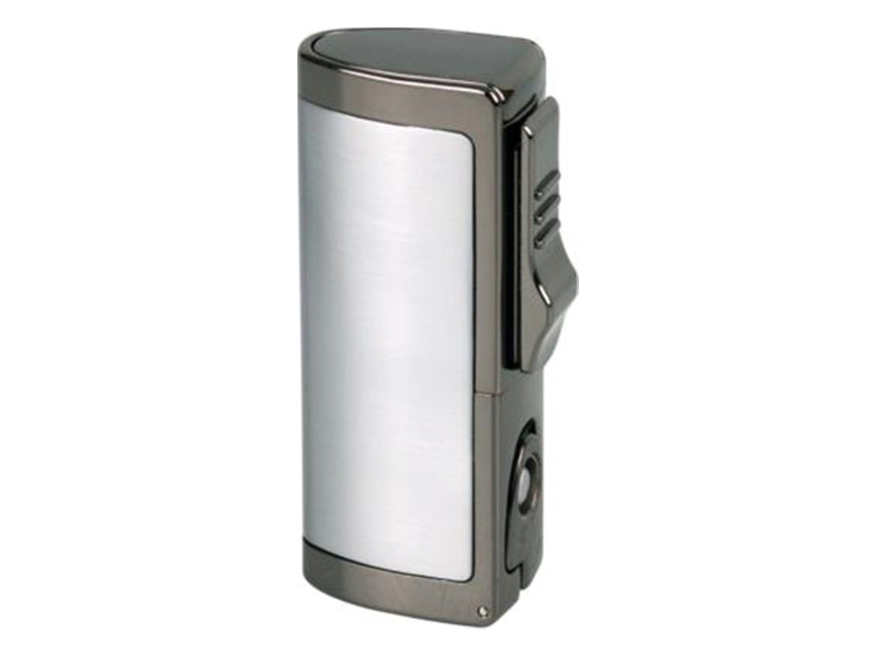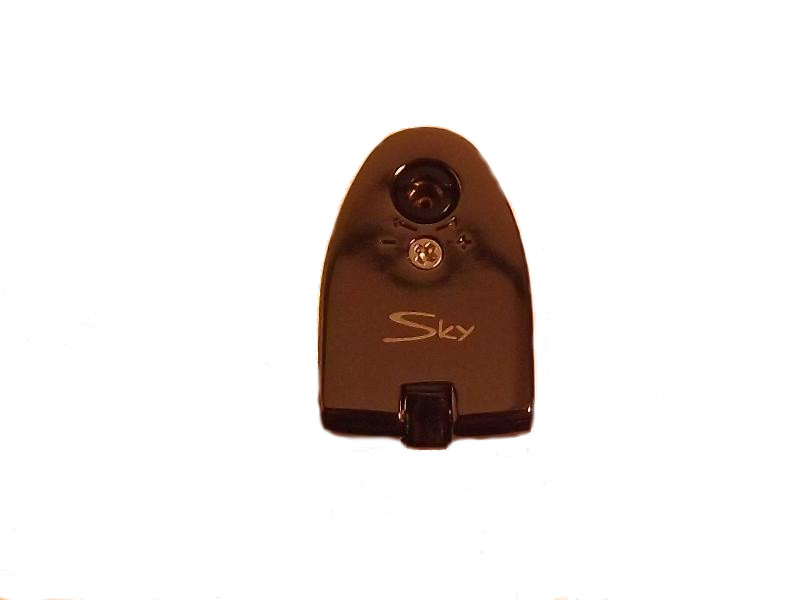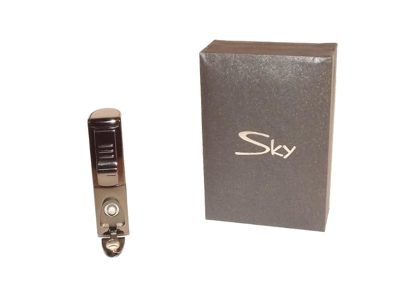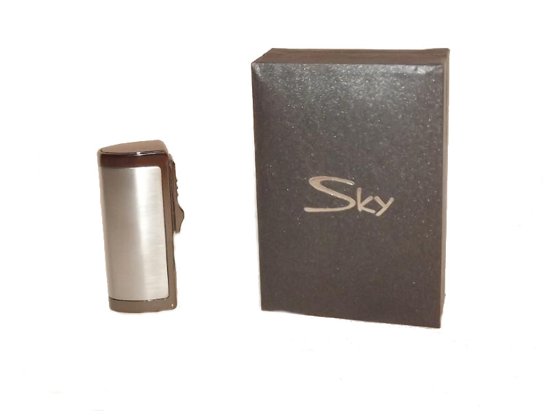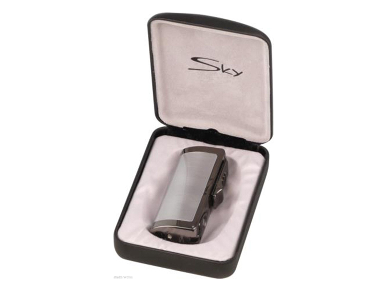 Ezüst színű, króm, 3 szúrólánggal égő szivar öngyújtó, beépített 8mm-es szivarfúróval. A Szivargyújtó alját egy Sky logó díszíti.