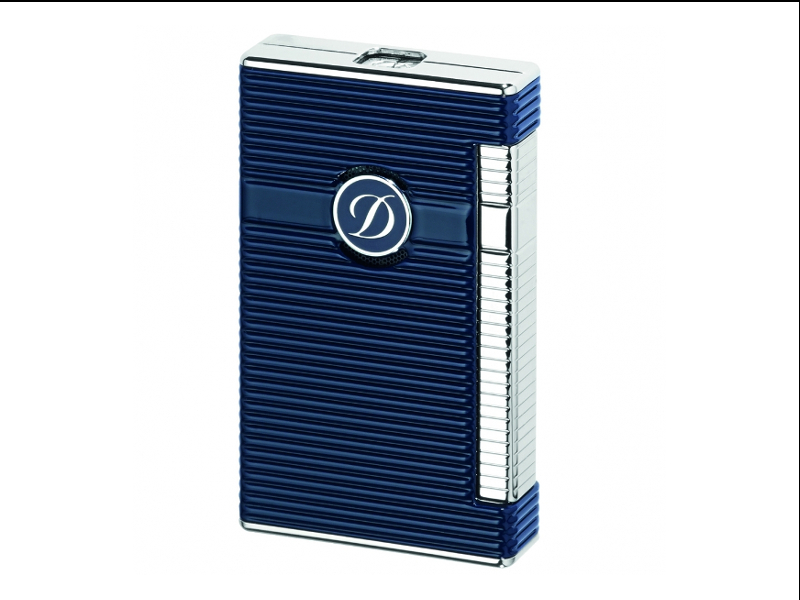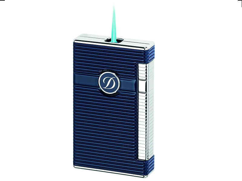 Ezüst szegélyes, sötétkék színű, bordázott mintával, szűrólángos, S.T. Dupont L2 Palladium luxus szivar öngyújtó.