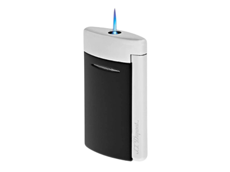 Kis méretű S.T. Dupont Mini matt fekete színű öngyújtó, amely tökéletesen illeszkedik a kézbe. Az S.T. Dupont Mini öngyújtó egyetlen lézersugaras lánggal egy modern öngyújtó. Az öngyújtó teste matt fekete, a fej és a széles gyújtógomb csiszolt króm.