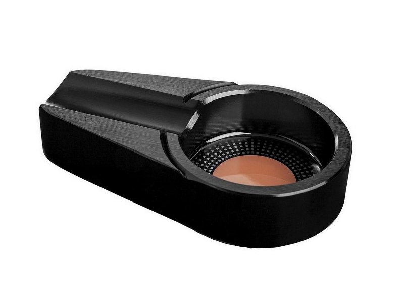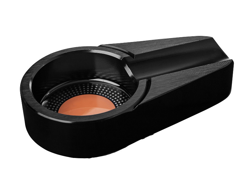 Fekete színű, fém, ovális szivar hamutartó, 1 szivarnak elegendő hellyel.