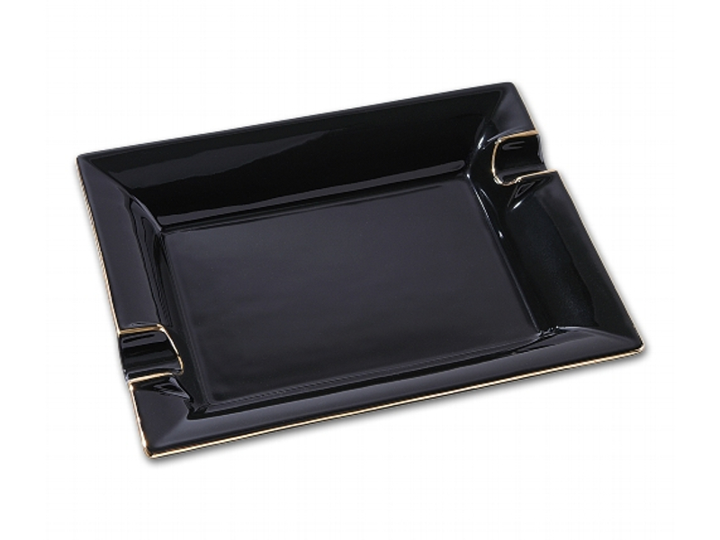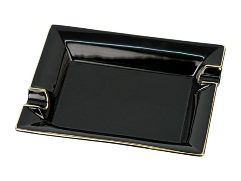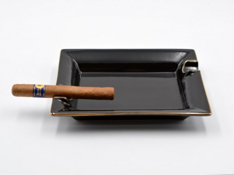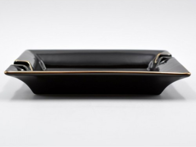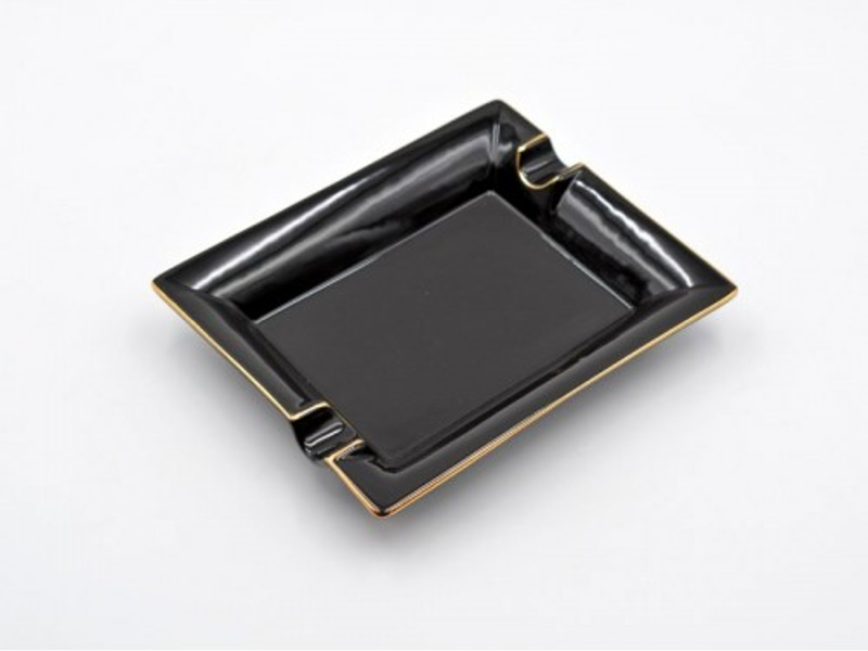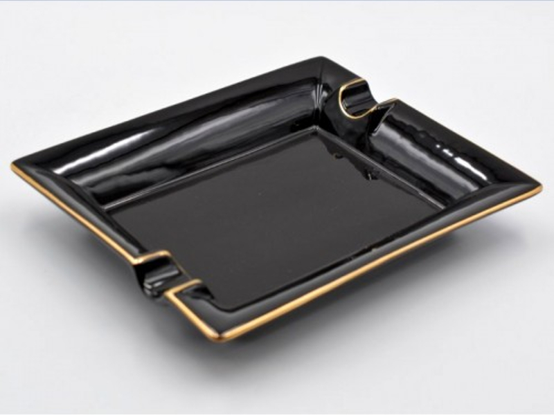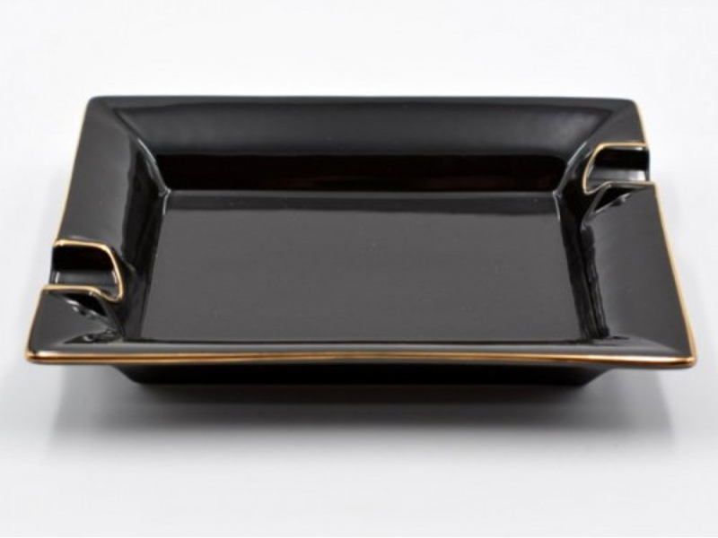 Porcelánból készült, arany szegélyes, fekete színű szivar hamutartó, 2 szivarnak elegendő hellyel.