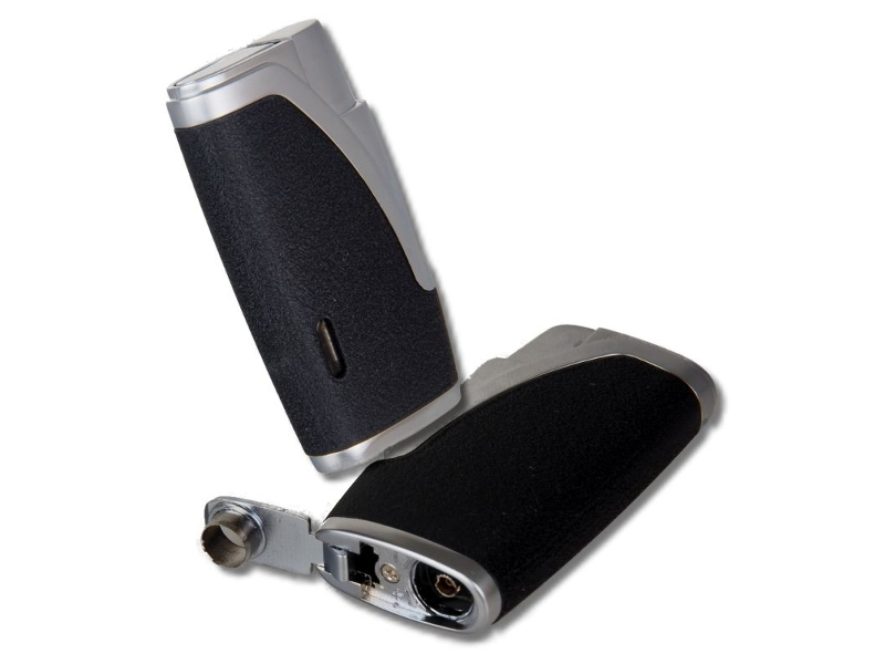 Fekete színű és króm, szúrólánggal égő Hadson szivaröngyújtó, kihajtható szivarfúróval.