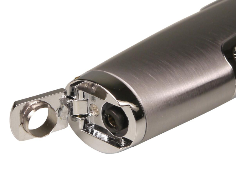Optimális gyújtóeszköz a kifejezetten vastag szivarok gyújtásához. A fedél megvédi a gyújtószerkezetet a szennyeződésektől.