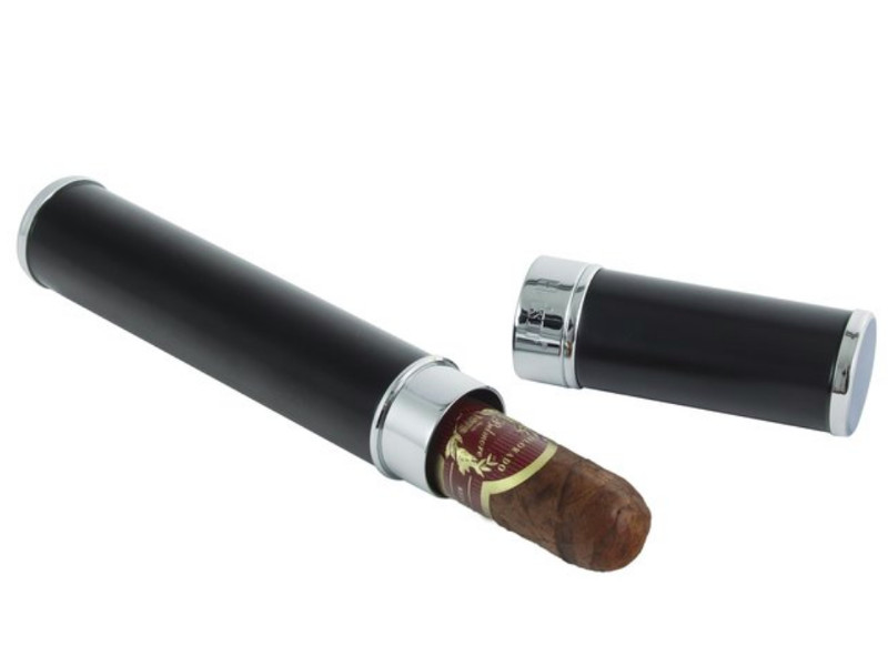 Króm gyűrűvel díszített, fekete Hadson aromazáró szivartartó tok, 1 szál szivar részére.