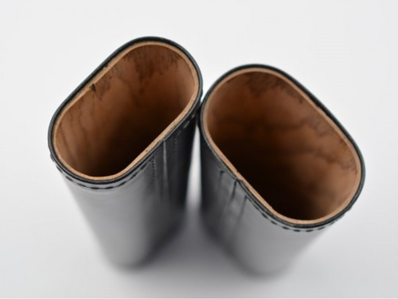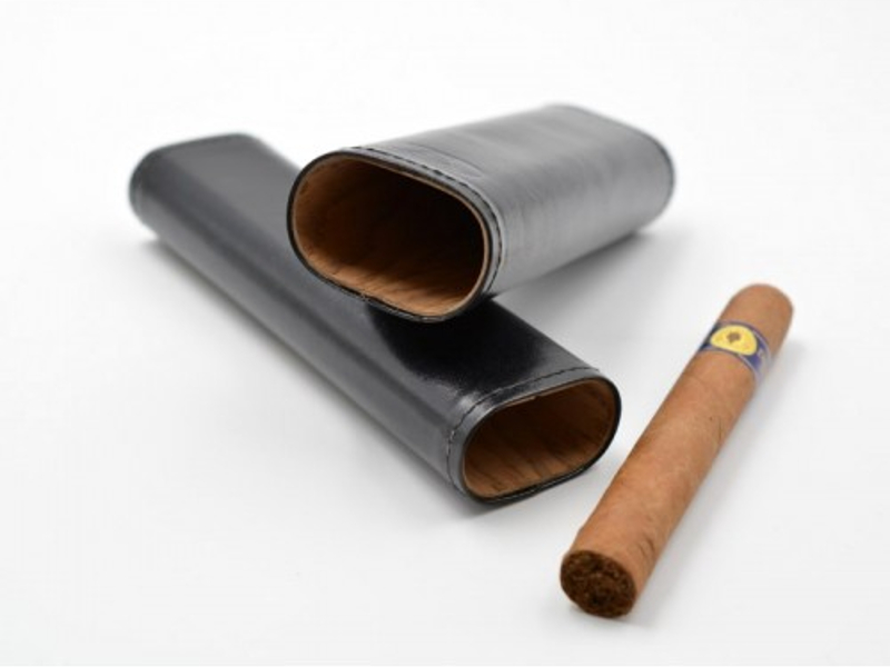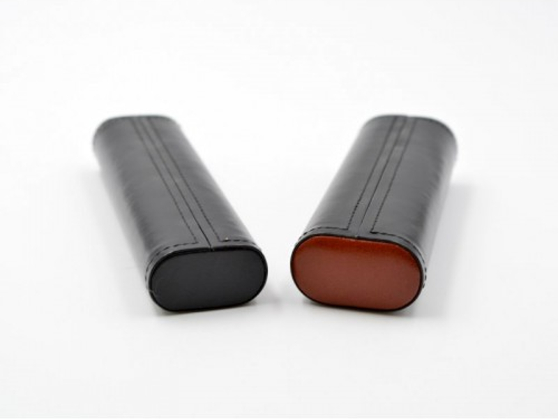 Fekete színű, marhabőrből készült szivartok, 2 darab szivar tárolásáran alkalmas, cédrusfa belsővel. A szivartok elején Ambiente logóval. A szivartok teteje barna színű bőr díszítéssel.