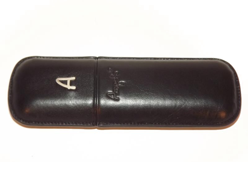 Fekete színű, 2 darab szivar tárolására alkalmas bőr szivartok. Az szivartok elején Angelo logó található.