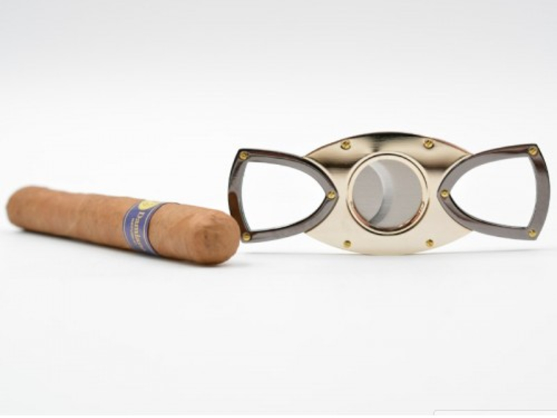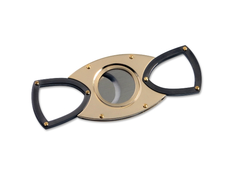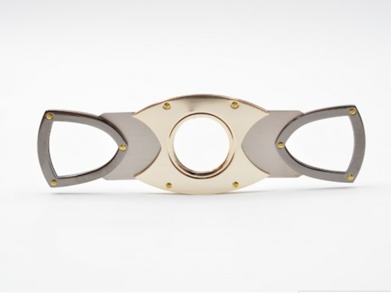 Krómozott dupla pengés szivarvágó, aranyszínű csavarokkal. Jól kialakított kézbeillő fogása van.