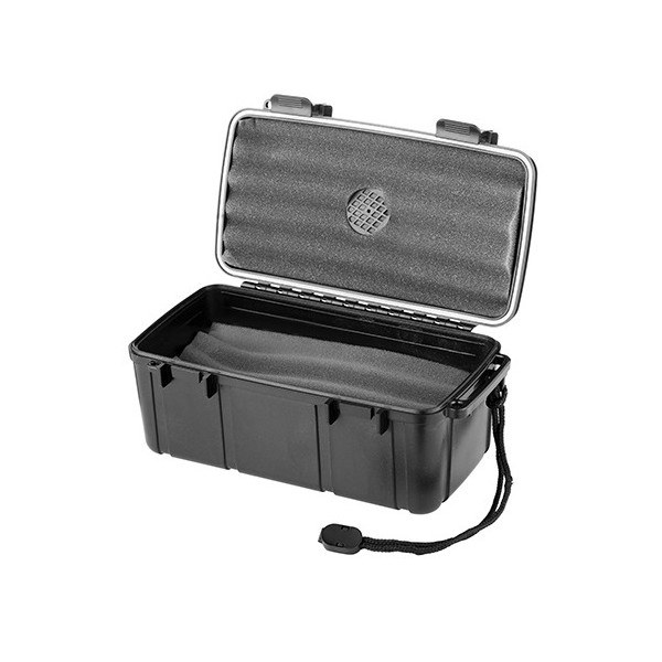 Tartós műanyagból készült, belül szivaccsal bélelt utazó humidor, amely akrilpolimer kristályos párástót tartalmaz. Az utazóhumidor kb. 15-10 szivar tárolására alkalmas, teteje nagyon pontosan záródik.