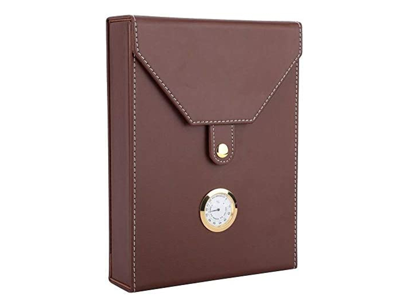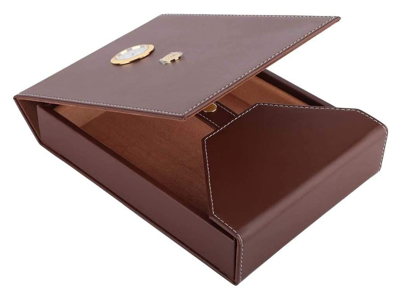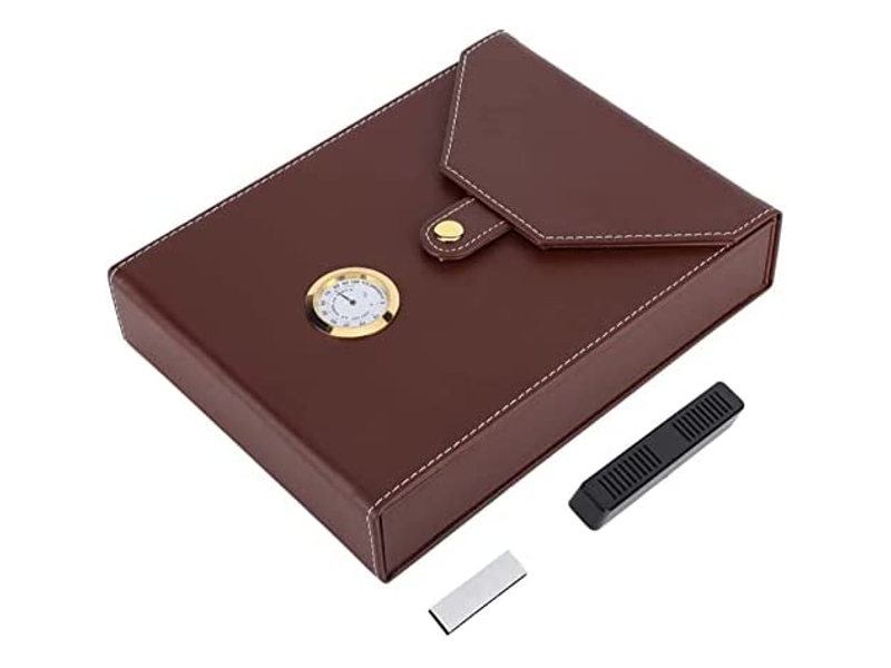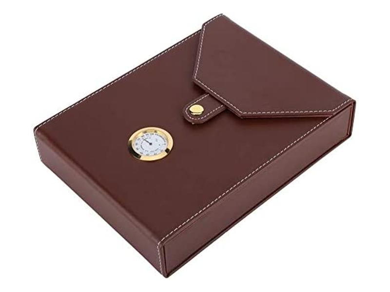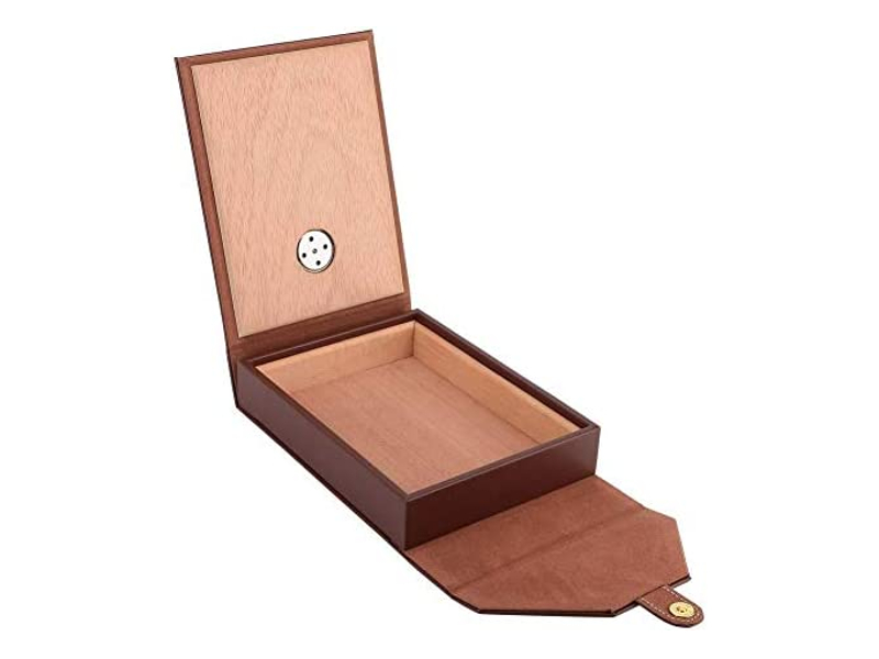 Utazóhumidor – 15 szivar részére, cédrusfa belső, párásító – barna bőr, Achenty!